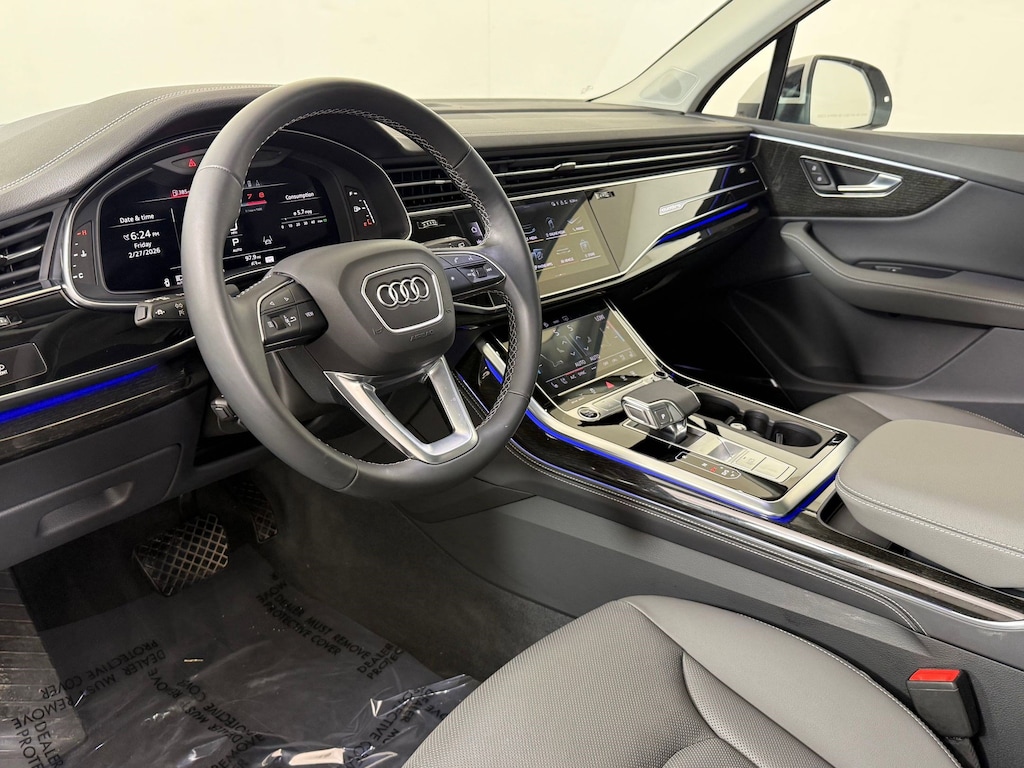 Under the hood, the 2025 Audi Q7 offers responsive turbocharged performance paired with Audi's legendary quattro all-wheel drive system. The result is smooth acceleration, confident traction, and balanced handling whether you are navigating city streets, commuting along I-65, or heading out on a weekend getaway across Tennessee. Its refined suspension system ensures a quiet, composed ride for both driver and passengers.