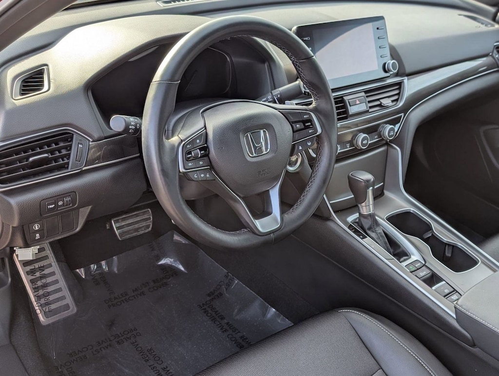 Wireless Phone Connectivity, Wheels: 19" Machine-Finished Alloy w/Black Inserts, Vehicle Stability Assist (VSA) Electronic Stability Control (ESC), Valet Function, Trunk Rear Cargo Access, Trip Computer, Transmission: Continuously Variable -inc: sport mode and paddle shifters, Transmission w/Driver Selectable Mode, Tires: 235/40R19 96V AS, Strut Front Suspension w/Coil Springs. This Honda Accord Sedan has a powerful Intercooled Turbo Regular Unleaded I-4 1.5 L/91 engine powering this Variable transmission.