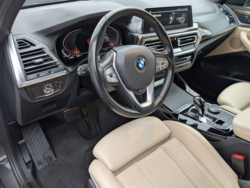 This 2023 BMW X3 xDrive30i (***CLEAN CARFAX***) comes complete with features such as CONVENIENCE PACKAGE, Active Driving Assistant, Blind Spot Detection, Lane Departure Warning, Panoramic Moonroof, Enhanced B/T and Smartphone, Comfort Access, Heated Steering Wheel, Heated front seats, Dynamic Digital Cluster, iDrive Controller, Universal garage-door opener, Android Auto, Hi-fi sound system, Keyless Entry, and much more!